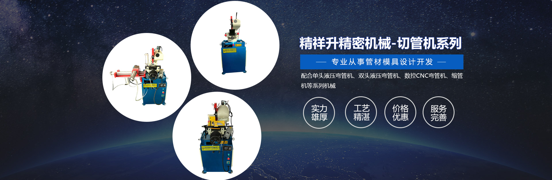 江蘇精祥升機械有限公司是江蘇張家港市一家專業從事管材模具設計開發公司位于張家港市樂余鎮。專業針對汽車、摩托車、自行車、鋼制家具、空調業、船迫制造、衛浴設備、管類加工等工礦行業的鐵管,銅管,鋁管,不銹鋼等多種不規則型材彎曲、縮管、擴管、墩筋、切割、鉚接等管材成型模具制造。配合單頭液壓彎管機、雙頭液壓彎管機、數控CNC彎管機、縮管機等系列機械。